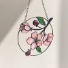 Cherry blossom Painted Stained Glass Suncatcher, Window Hanging Decor, Outdoor Sun Catcher Decor, Japandi Wall Decor